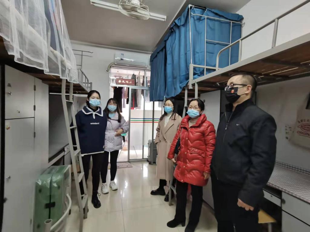 为落实疫情防控期间学生管理工作,加强学生安全教育,了解学生身心状态,走进学研究生的生活、学习和心灵,3月23日下午,学院副院长胡胜标、研究生办主任黄畅、研究生辅导员刘萍深入学生宿舍开展检查慰问。