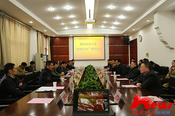 (记者 黄柳英 彭丹妮)3月10日下午,我校“潇湘学者”聘任仪式在校办公楼二会议室举行,校长蒋洪新出席聘任仪式,仪式由副校长廖志坤主持。