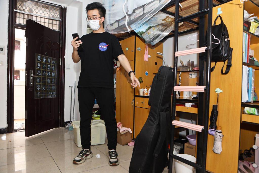 与宿管人员打好招呼后,王洋先是进了一名叫裴蕾的同学的宿舍。" 今天给她寄一把吉他。" 说完,王洋就给这名同学拨打了微信视频电话,向对方确认了吉他的位置。背上吉他后,王洋又去了别的有邮寄需求同学的宿舍。