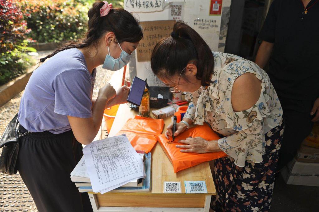 与此同时,该院 2016 级辅导员张金萍和 2019 级辅导员李翠玲也来到了江边三舍,为自己年级的同学寄快递。