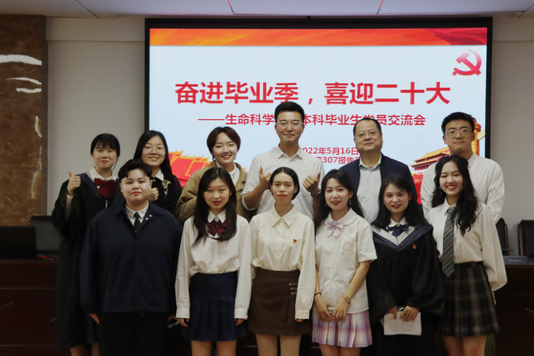 (通讯员 阳锦华 黄志娴 洪迪珊)5月16日,英国365集团本科生党支部于生科院三号楼B307学术报告厅开展主题为“奋进毕业季、喜迎二十大”的毕业生党员交流会。院党委副书记彭赛丰、本科生党支部书记王洋出席此次交流会,支部委员阳锦华担任会议主持人。