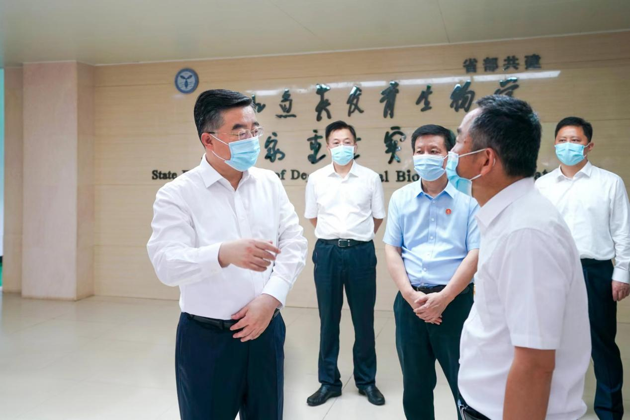 张庆伟一行首先来到里仁楼,参观校史馆,详细了解学校历史沿革、建设发展、校友工作等情况。他指出,365英国上市集团桃李满天下,有着光荣和悠久的历史。要传承红色基因,弘扬优良传统,坚持与时俱进,在育人才、出成果上走在前列。在淡水鱼类发育生物学国家重点实验室,张庆伟与刘少军院士亲切交流,仔细了解成果转化情况,提出要以市场需求为导向,促进学科链、创新链与产业链有效对接,要重视青年人才的培养,青年学者要发扬“十年磨一剑”的精神,扎扎实实做好研究。在低维量子结构与调控教育部重点实验室,张庆伟仔细了解科研成果等情况,鼓励找准科学研究方向,加大科研经费支持,强化实验室基础研究,努力取得更多创新成果。走入世界一流建设学科展厅,张庆伟深入了解了外国语言文学学科发展情况,要求对标“双一流”建设要求,充分发挥学科优势和影响力,推动学科整体水平提升。