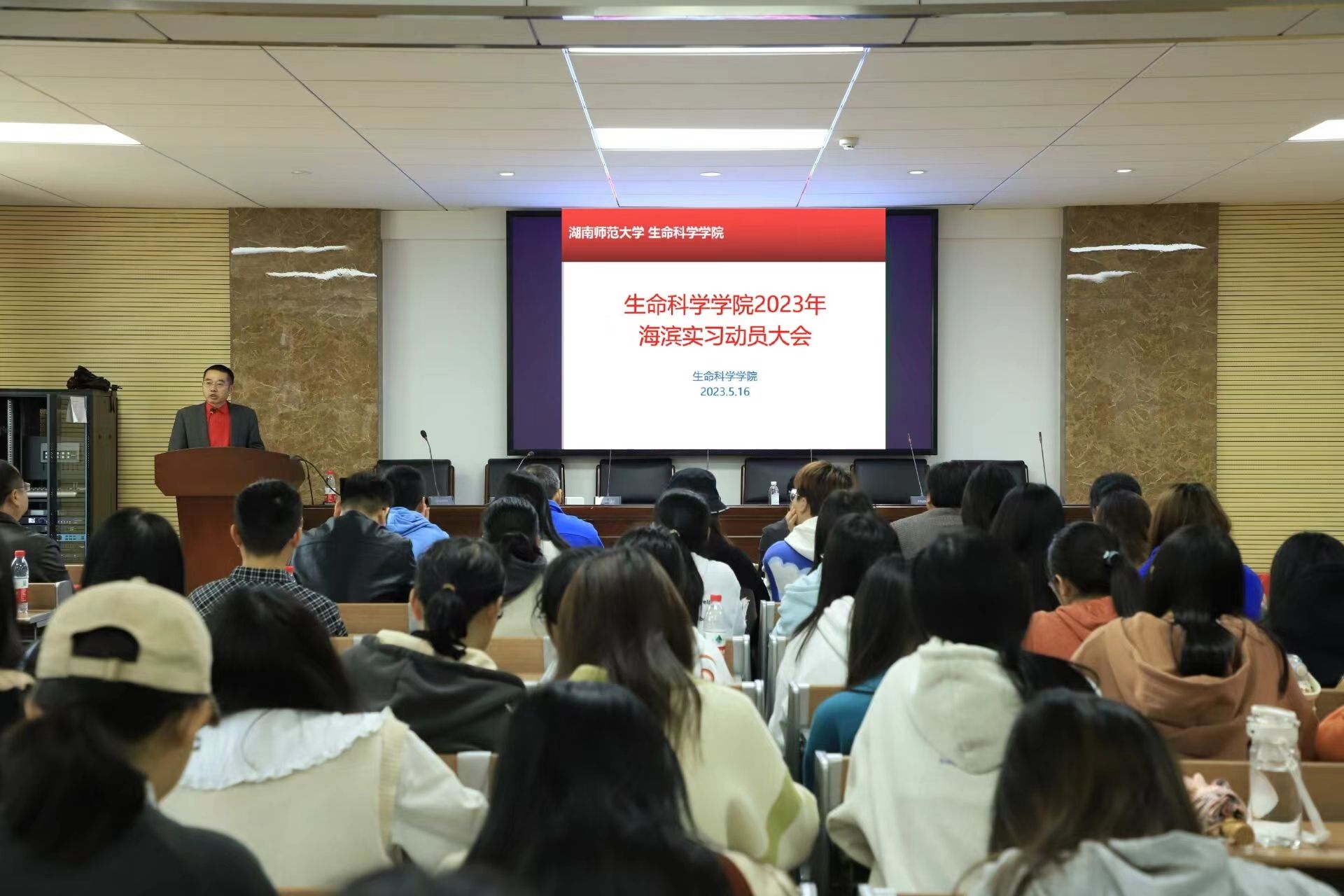 (通讯员 周佳琳 邓芝涵)5月16日中午,英国365集团于生学院B307学术报告厅开展2022级本科生海滨实习动员大会。生科院各位领导和全体指导老师、教务办、学工办各位老师出席此次会议。
