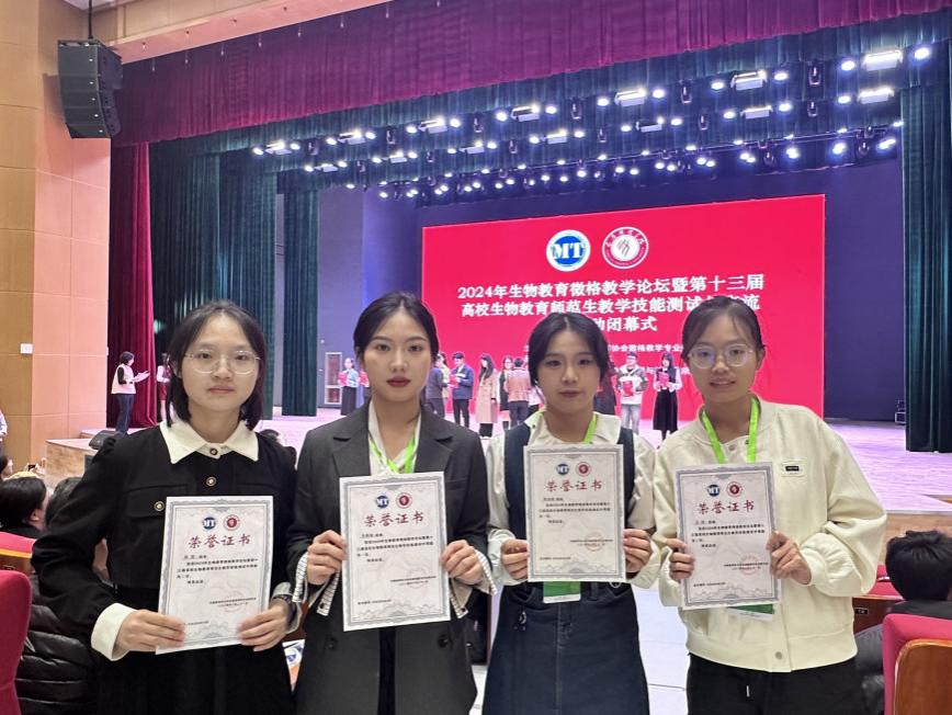 本次师范生教学技能测试与交流展示活动,学院选拔报送2021级生物科学(师范)专业陈淑娟、朱新瑜、王妍、陈茜四名同学参赛。在梁小星、戴国、段巍等老师的指导下,学子积极训练、认真备赛,精心打磨教学设计,细致提升授课技能,力求达到最佳的教学效果,最终脱颖而出,斩获佳绩。