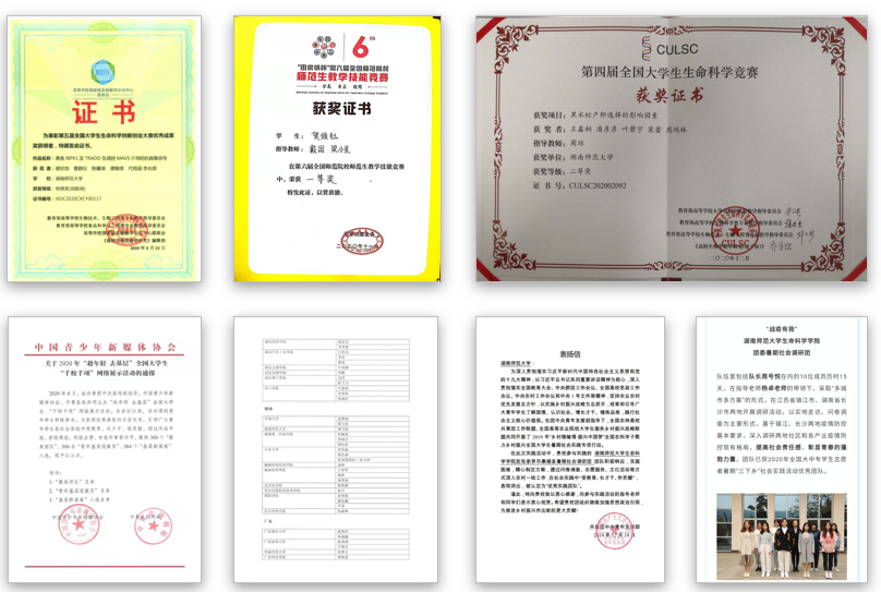 5.学生创新创业成果不断涌现。取得了如第十五届“挑战杯”全国大学生课外学术科技作品竞赛自然科学类一等奖,第十一届中国青少年科技创新奖,第四、五届全国大学生生命科学创新创业大赛特等奖等的好成绩。