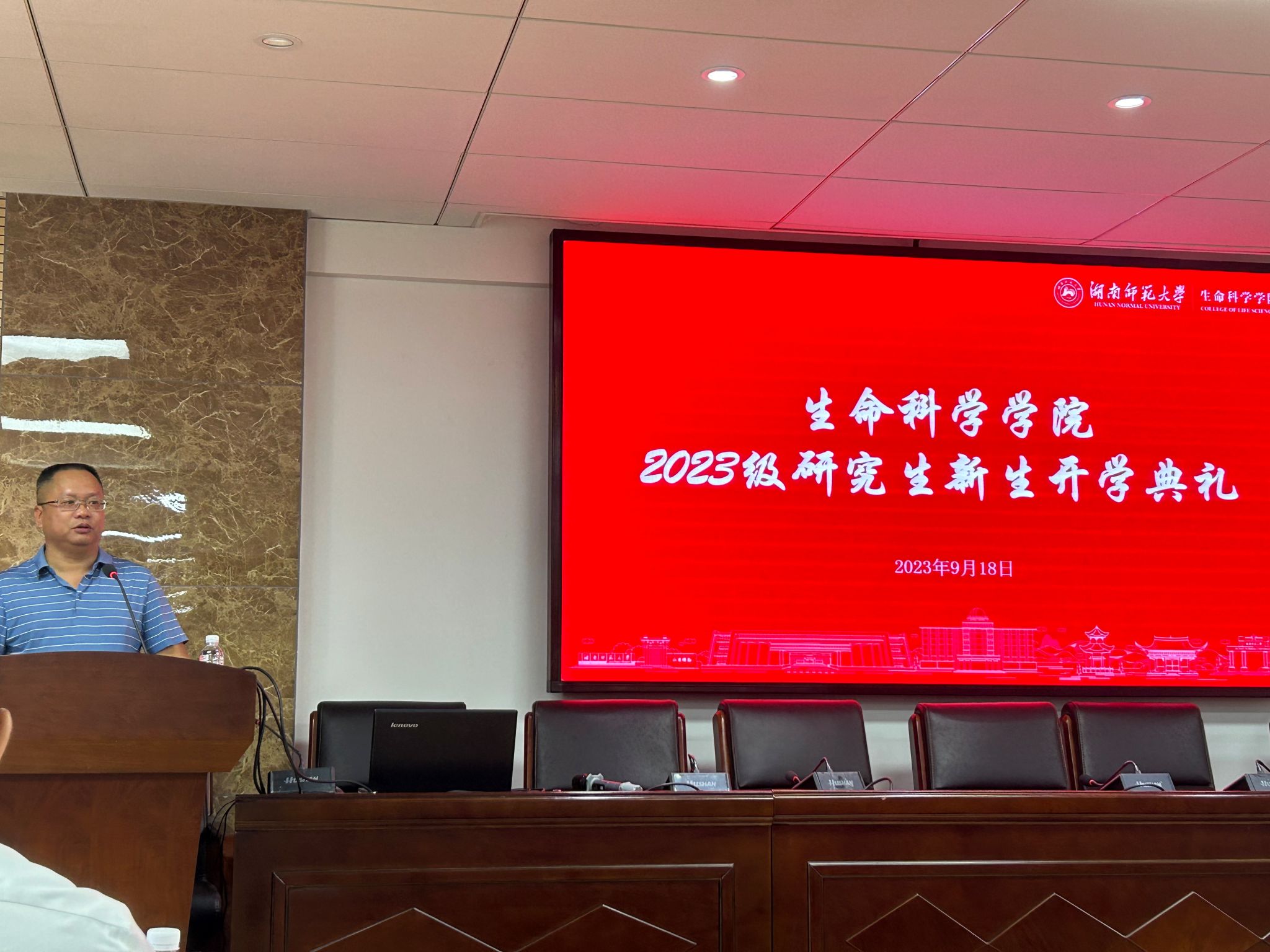 开学典礼上,院党委书记谢罗庚鼓励同学们在研究生阶段要不忘初心,找到自己的目标并为之努力奋进,并强调了生物学研究生的使命和责任,鼓励同学们要注重创新思维,勇于探索未知领域。谢罗庚强调了学术诚信和团队合作的重要性,希望同学们能够保持科研诚信、合作共进,为推动学科的发展做出积极贡献。副院长胡胜标给同学们传授科研经验和生活经验,拉近了师生之间的距离。研究生代表王雁灿博士为全体新生祝福和加油,也分享了研究生学习生活的经验。随着入学典礼的顺利举办,英国365集团新生的研究生生活也正式揭开序幕。