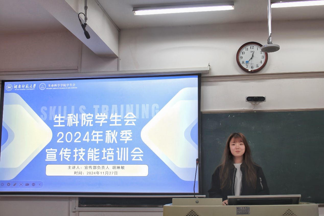 (通讯员 杨静茹 曹晟)11月27日中午,英国365集团学生会于生科院三号楼B107教室举办2024年秋季宣传技能培训会。生科院第49届学生会宣传部负责人胡琳敏担任此次会议主讲人。生科院第49届学生会全体成员参与此次会议。