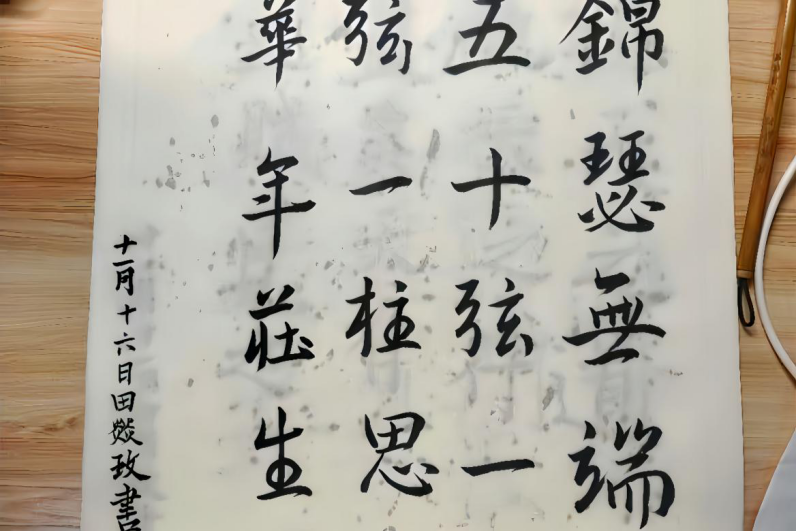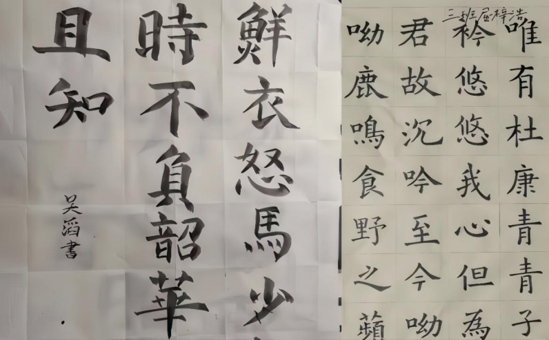 活动期间,参赛同学需在宣纸上进行书写,每人每天提交一份毛笔练习作品,以拍照形式进行日常打卡,练习的作品包括《锦瑟》《鸟鸣涧》《短歌行》等诗词。比赛阶段,以寝室为单位提交毛笔阶段的最终作品《沁园春·雪》参与奖项评比,获奖作品将于生科院教室后方进行展示以供师生欣赏。毛笔字练习比赛的评奖、评分均以寝室为单位进行,最终评分取各寝室成员练习打卡情况(60%)和比赛得分(40%)总和的平均分,奖项设置含一等奖、二等奖、三等奖、优秀奖若干。“‘寓’见墨香”宿舍“三字”的最后阶段粉笔字练习与比赛将于11月26日至12月10日开展。