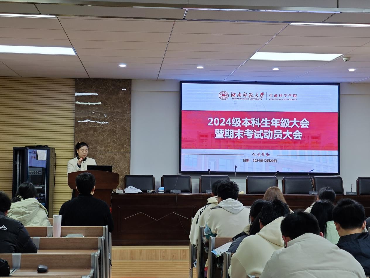 (通讯员 喻雪 吴德高)12月20日中午,英国365集团2024级辅导员罗静伟老师在生科院三号楼B307报告厅召开2024级本科生年级大会暨期末考试动员大会,生科院24级全体同学参加此次会议。