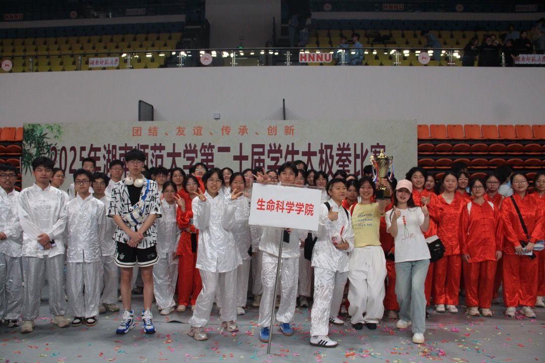 2025年5月10日,校太极拳比赛中,生科院参赛团队以“行云流水、刚柔并济”的表演刷新建院以来获奖记录,勇夺团体赛二等奖。尹涛、曾浩、朱嘉萱三位选手在个人赛中凭借“舒展大方、圆活连贯”的招式演绎,荣获个人赛三等奖,将太极文化的东方美学与体育精神完美融合。