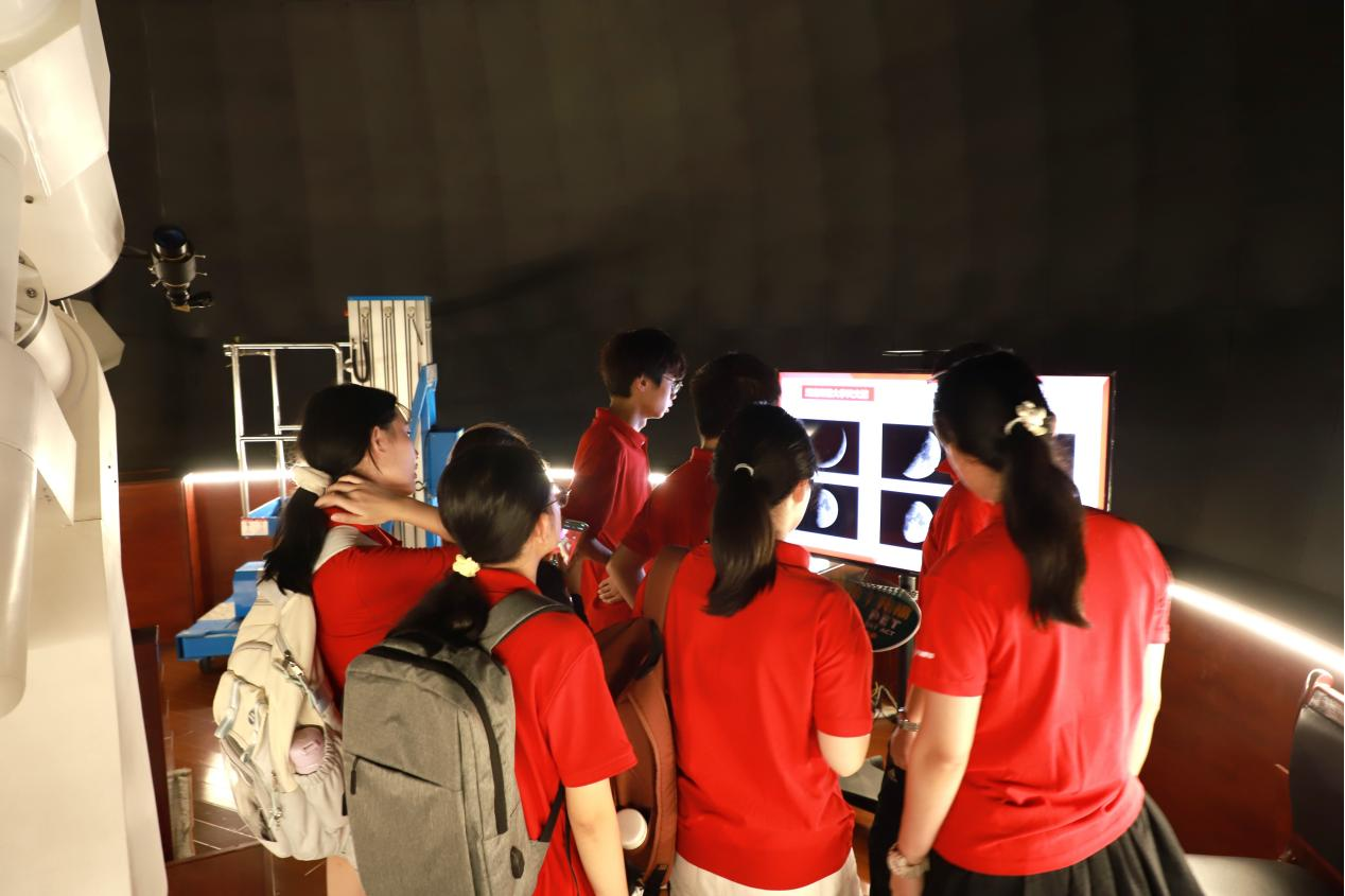 活动由2025级辅导员林鑫瑶及各班级班导共同带队,为保障参观体验,新生们分批次有序进入天文馆。同学们集中观看了由学校天文望远镜观测团队精心制作的天体科普视频,视频中详实的天文知识引发了同学们的热烈讨论。随后,同学们统一进入配套展览馆,馆内按观测技术发展脉络,从早期折射式望远镜复制品,到中期反射式望远镜模型,再到现代用于天体光谱分析的光谱仪等专业设备一应俱全,与之配套展出的还有各时期经典天文摄影作品,银河系局部星云的绚丽结构、月球表面密布的环形山、火星极冠的独特地貌等清晰画面,让同学们直观感受宇宙魅力。天文馆楼上的天文望远镜前,同学们按顺序完成观摩,还一同查看了该望远镜拍摄的月球与火星照片,现场交流氛围浓厚。