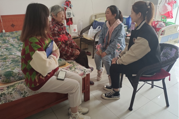 志愿者与老人交谈