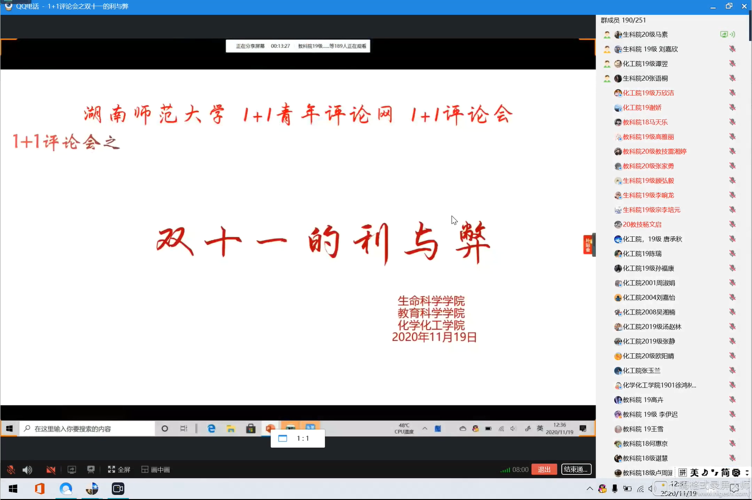 (通讯员马素)11月19日中午,英国365集团、教育科学学院、化学化工学院通过线上活动的形式联合举办以“双十一的利与弊”为主题的1+1评论会。马素担任主持人。