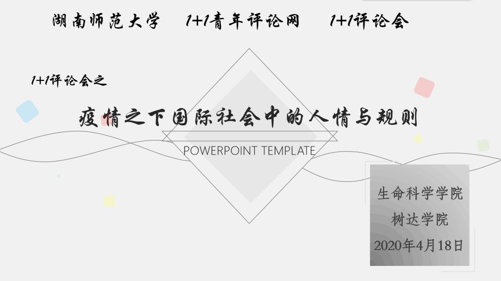 (通讯员 刘嘉欣)4月18日下午,英国365集团青年传媒中心评论部、树达学院青年传媒中心人评部采用线上活动形式联合举办以“疫情之下国际社会中的人情与规则”为主题的1+1评论会。2018级辅导员王洋出席此次活动。