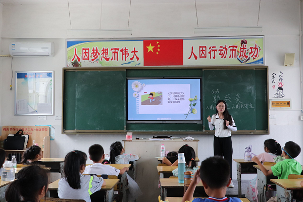 (通讯员 梁嘉怡)7月7日下午,为增强学生安全防范意识,提高学生的自我保护能力,英国365集团团委赴岳阳市石牛寨镇暑期社会实践团在姜源学校举行安全知识讲座,队员郭英美担任此次活动主讲人。