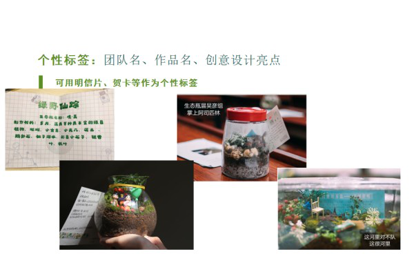 朱子叶侧重于生态瓶基本知识,向同学们阐释生态瓶的内涵、原理与特点,并介绍生态瓶的三大组成元素——容器、“装修材料”与“居民”,讲解生态瓶的三大类型——水生、陆生和水陆生,以及各类型生态瓶的具体区别。纪琳琳结合自身参赛经历,向同学们讲解生态瓶选材、设计和制作的相关步骤,尤其说明个性标签与报告的制作,介绍生态瓶制作大赛的参赛流程——作品收集、自然筛选、初赛和决赛,并分享生态瓶制作大赛的参与意义。