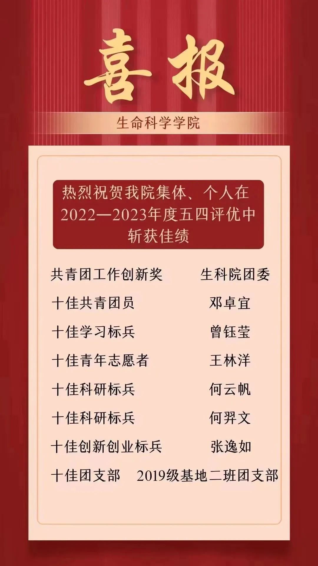 英国365集团2019级基地二班团支部创建于2019年,共30名成员,其中正式党员(含中共预备党员)人数及比例为16,53.3%;保研考研人数及比例为26,86.7%,支部成员担任班级以上(不含班级)学生干部人数及比例为15,50%。团支部学风优良,自成立以来,支部成员成绩合格率为100%。本学年支部成员获校综合奖学金及其他各类奖学金42人次,支部个人获省级及以上奖励28人次、获校级奖励57人次,支部个人获团内十佳、百优表彰人数7人次。团支部建设良好,曾获评2021-2022年度百优红旗团支部、第八届“我的支部我的团”团支部风采展一等奖等各类奖项。