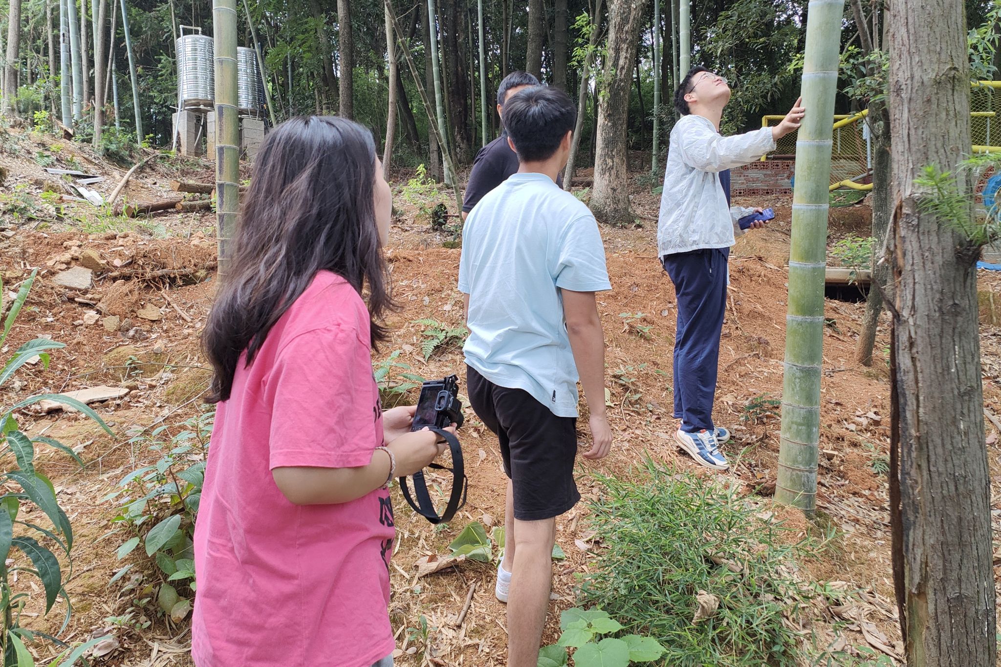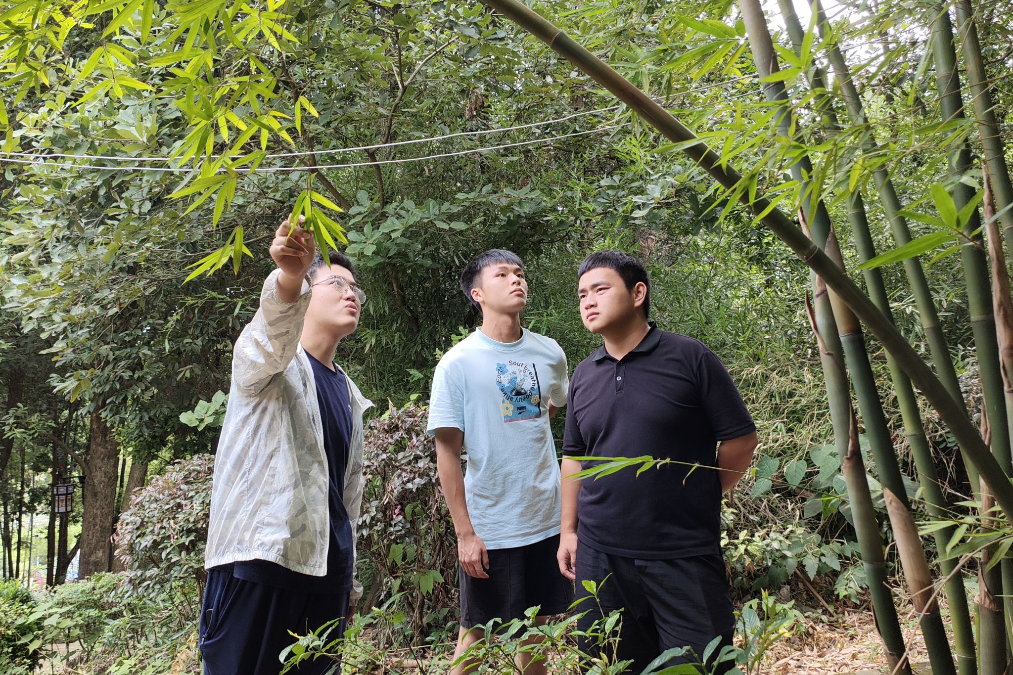 成员们观察箬竹