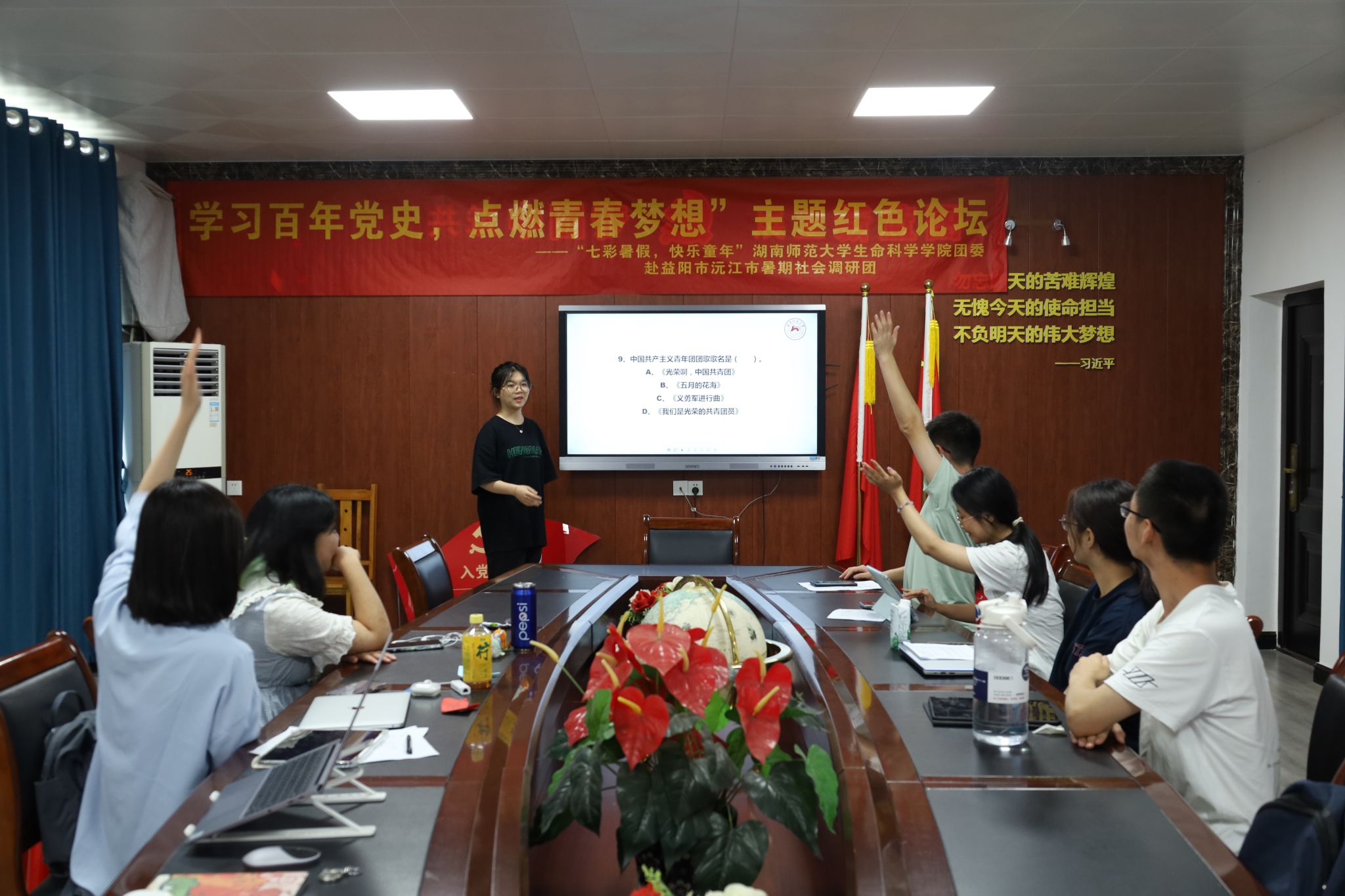 (通讯员 王芷祯 黄辰希 李宇轩)7月18日上午,英国365集团团委赴益阳市沅江市暑期社会调研团调研组举办“回顾红色团史,不忘初心使命”座谈会活动。调研组组长黄晨容担任此次座谈会的主讲人。