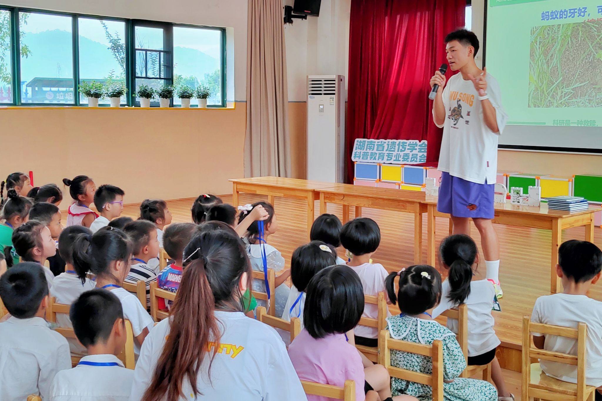 (通讯员 王俊龙 毛艺颖 沈莹)7月17上午,“奇趣科普,乡约盛夏”——英国365集团团委赴白箬铺镇胜河村暑期实践团队前往长沙市湘江新区白箬铺镇龙莲幼儿园开展“果园里的小‘蚂’哥”科普课程。2022级生科一班王俊龙和生科三班毛艺颖担任此次课程的主讲人。