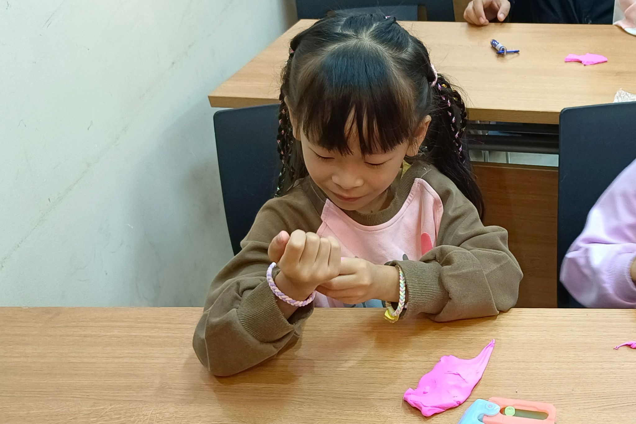 此次活动分为生物学知识讲解和手工制作两个部分。熊逸冰为小朋友们讲解生物学中脊椎动物相关知识,她讲述了脊椎动物左右对称的外形特征和高度分化的神经系统。志愿者将材料分发给小朋友们,帮助他们完成手工制作并对提出的问题进行答疑解惑。在制作过程中,志愿者们补充说明小朋友所选动物的有关知识,帮助他们捏造更为准确形象的动物雕塑。小朋友们相互展示手工成果,并在志愿者的引导下站上讲台分享所学知识。