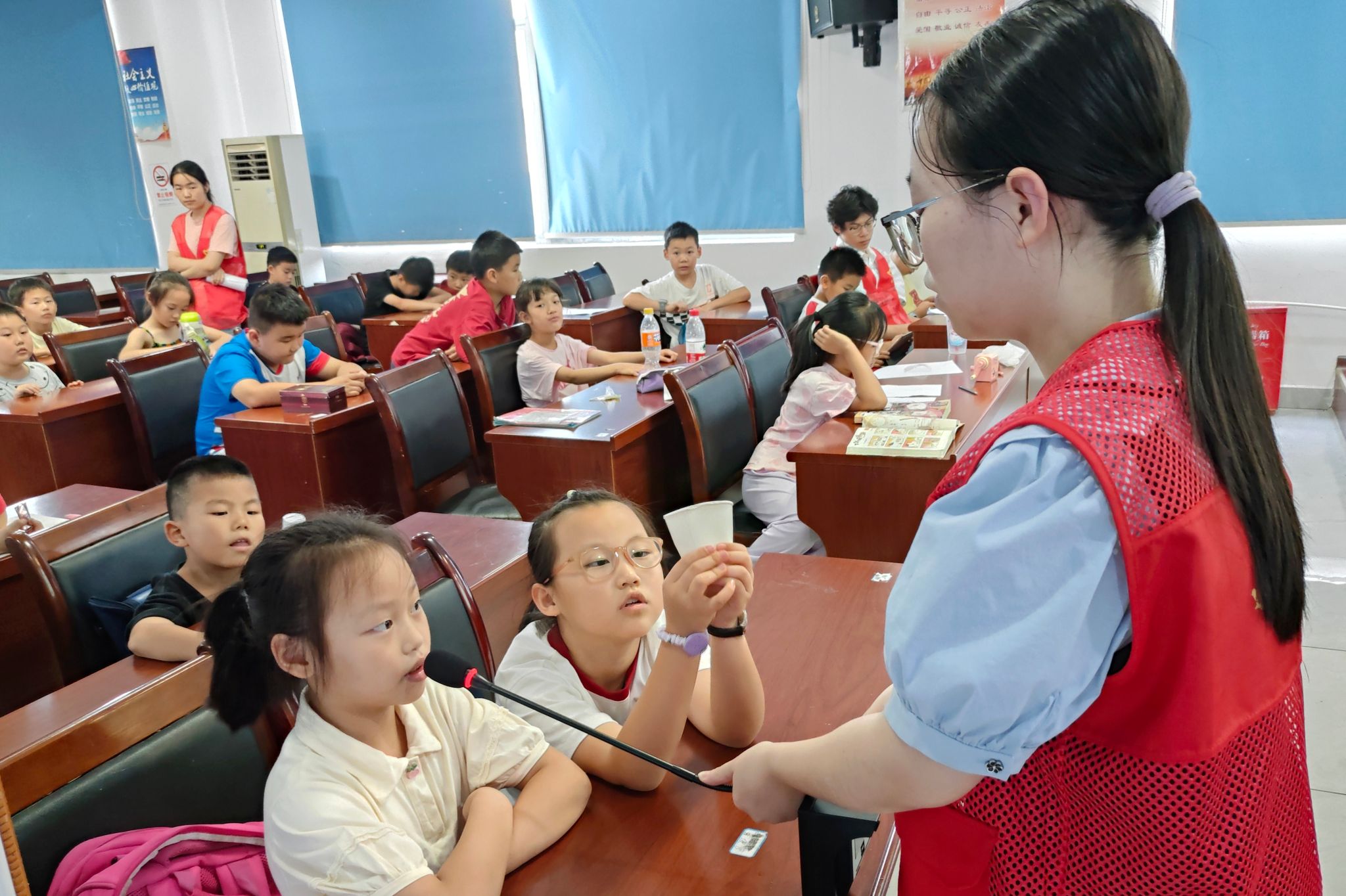 周洁帆通过讲述鸡毛信、刘胡兰和半条被子的故事,带领同学们一起探索爱国主义的内核以及红色精神的传承,树立正确的人生观、价值观。此外,周洁帆她向小朋友们提问每个故事带来的收获,小朋友们表示此次课程让他们对革命先烈事迹和先烈们面对困难、奋勇直前的精神拥有了新的认识和理解。