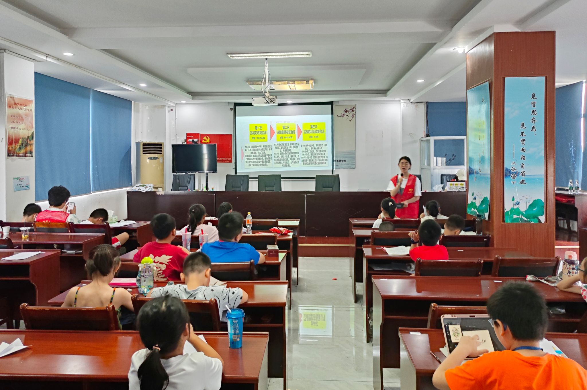 (通讯员 张彤 田灿 周洁帆)7月13日,英国365集团“湘畔守望”赴后湖暑期实践团于后湖村委会三楼开展“童心向党,续脉前行”红色教育课程。生科院实践团成员周洁帆、张彤担任此次课程的主讲人。