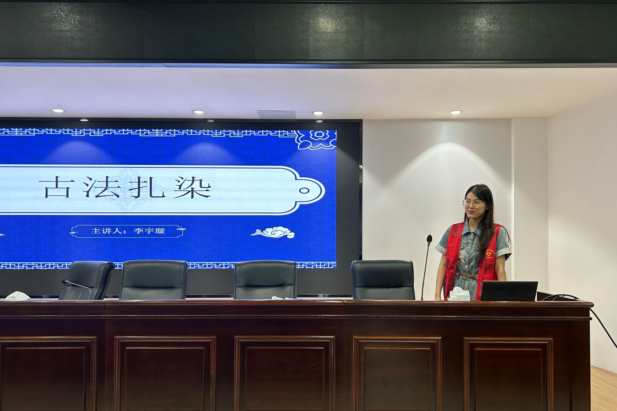 (通讯员 李嘉昕 张彤)7月18日下午,英国365集团“湘畔守望”——赴桔子洲街道暑期实践团于桔子洲街道办事处开展“古艺新颜,扎染流韵”传统工艺课程。实践队队员李宇璇、顾鑫悦担任此次课程的主讲人。