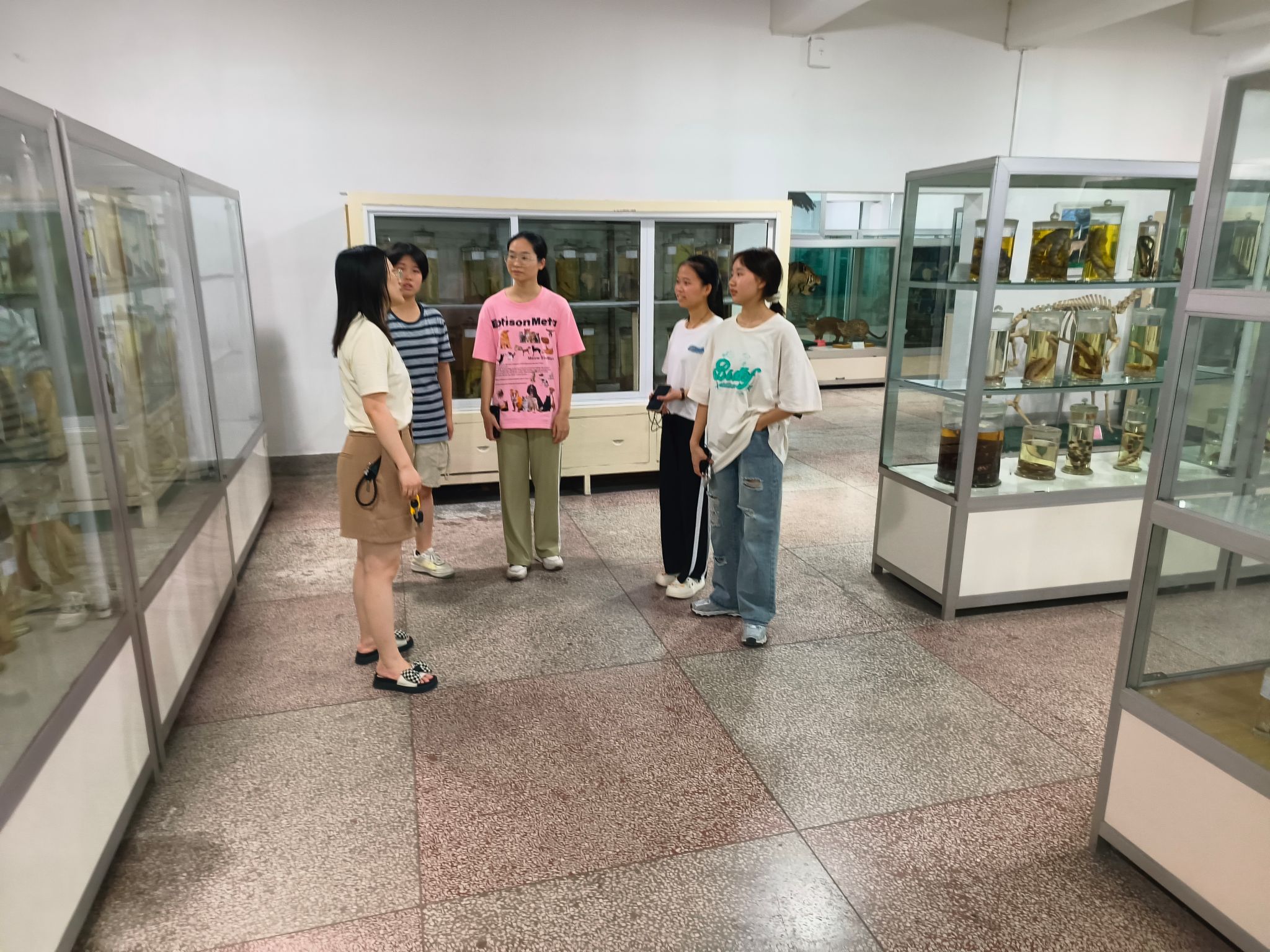7月18日晚上,调研团队前往生科院标本馆与标本馆负责老师刘萍开展深入访谈与学习。生科院动植物标本馆历史悠久,馆藏资源丰富,科普价值较高。调研团成员跟随刘萍老师,了解植物标本馆、无脊椎标本馆、脊椎标本馆的馆藏资源以及标本简介。刘萍表示,标本馆内馆藏资源均以进化为脉络布设,在讲解过程中需要注意不同物种之间的差异与联系,针对稀有以及重点标本进行重点介绍。标本馆内的馆藏资源,大多数来自市场购买以及社会组织捐赠,大多数由生科院本科生进行标本制作。在培训过程中,刘萍对于不同标本馆讲解过程侧重点以及思路进行规划,表示应当针对不同受众群体实行不同的讲解方案和策略。最后,她大力肯定了暑期社会实践团的价值以及意义,高度支持配合团队的调研以及培训工作