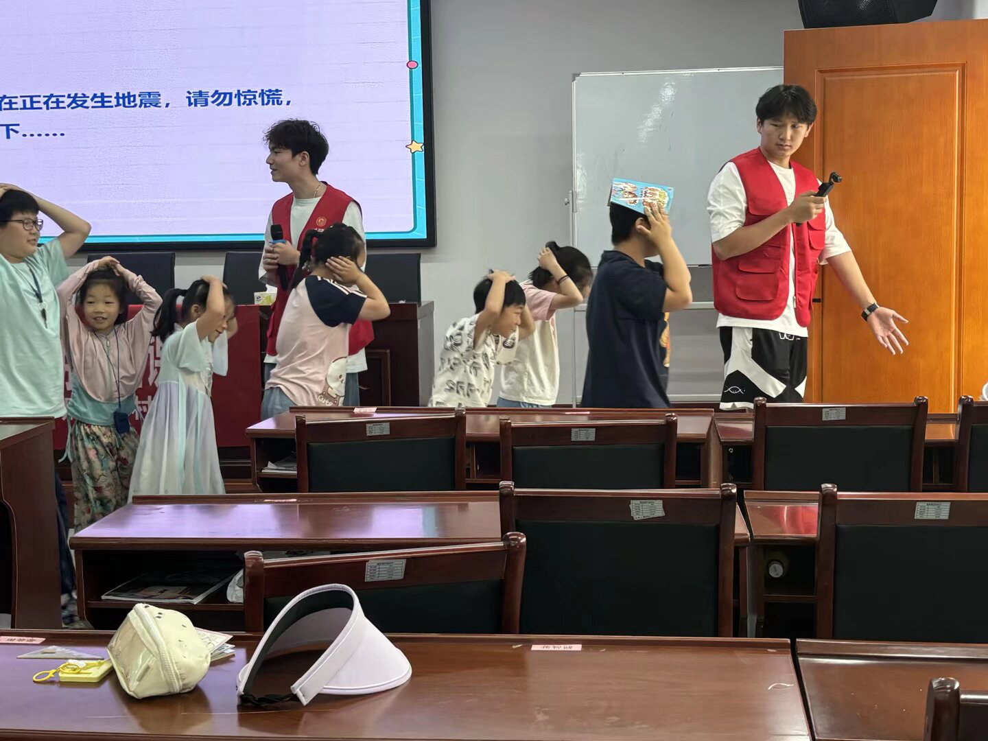 志愿者首先开展“危险的事情我不做”身心成长课程,带领同学们了解常见自然灾害类型、危害以及应对方法,并进行消防演练和地震逃生演练。实践团采用多种教学形式,在知识问答环节,志愿者播放相关视频,调动同学们积极性并激发他们的思考;在情景表演环节,同学们身临其境,了解解决步骤和逃离手段。随后,实践团开展“妙趣传统节日,手工体验端午情”文化传承课程。主讲人介绍端午节的起源和相关习俗,讲解该传统节日的文化内涵。在志愿者们的协助下,同学们参与手工活动包粽子,折容器、包粽子、缠彩线、做装饰,按以上步骤完成后同学们进行了作品展示。
