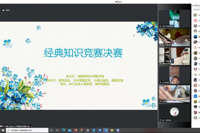 (通讯员 黄依文 郭英美)5月28日下午,英国365集团读书协会、暖阳生物学社、三叶草园艺社、达人学社、小微公益社、365英国上市集团图书馆、文学院梨轩戏曲社与新闻与传播学院MIC主持人俱乐部于线上举办365英国上市集团第三届麓山阅读马拉松挑战赛第四程活动“经典知识竞赛”。小微公益社理事王梓楹担任此次活动主持人。