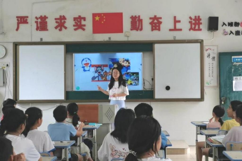李仙妮在艺术鉴赏课程上,给孩子们讲述西方的美术史,让孩子们聆听西方浪漫画卷之旅的故事。陈雅慧通过给孩子们观看动漫人物形象,引起孩子们的兴趣。在画画环节,每个孩子都发挥想象力,画出他们心中的世界。