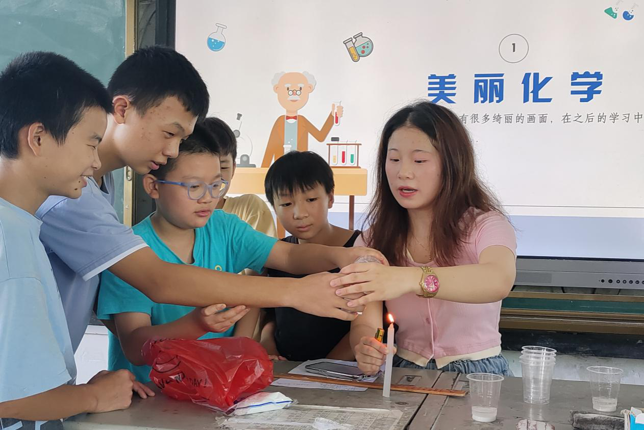 (通讯员 李丹 陈春雨)7月22日上午,英国365集团三叶草园艺社赴郴州市苏仙区五里牌中学暑期社会实践团开展趣味化学课程,实践团成员江艾雯担任此次课程主讲人。