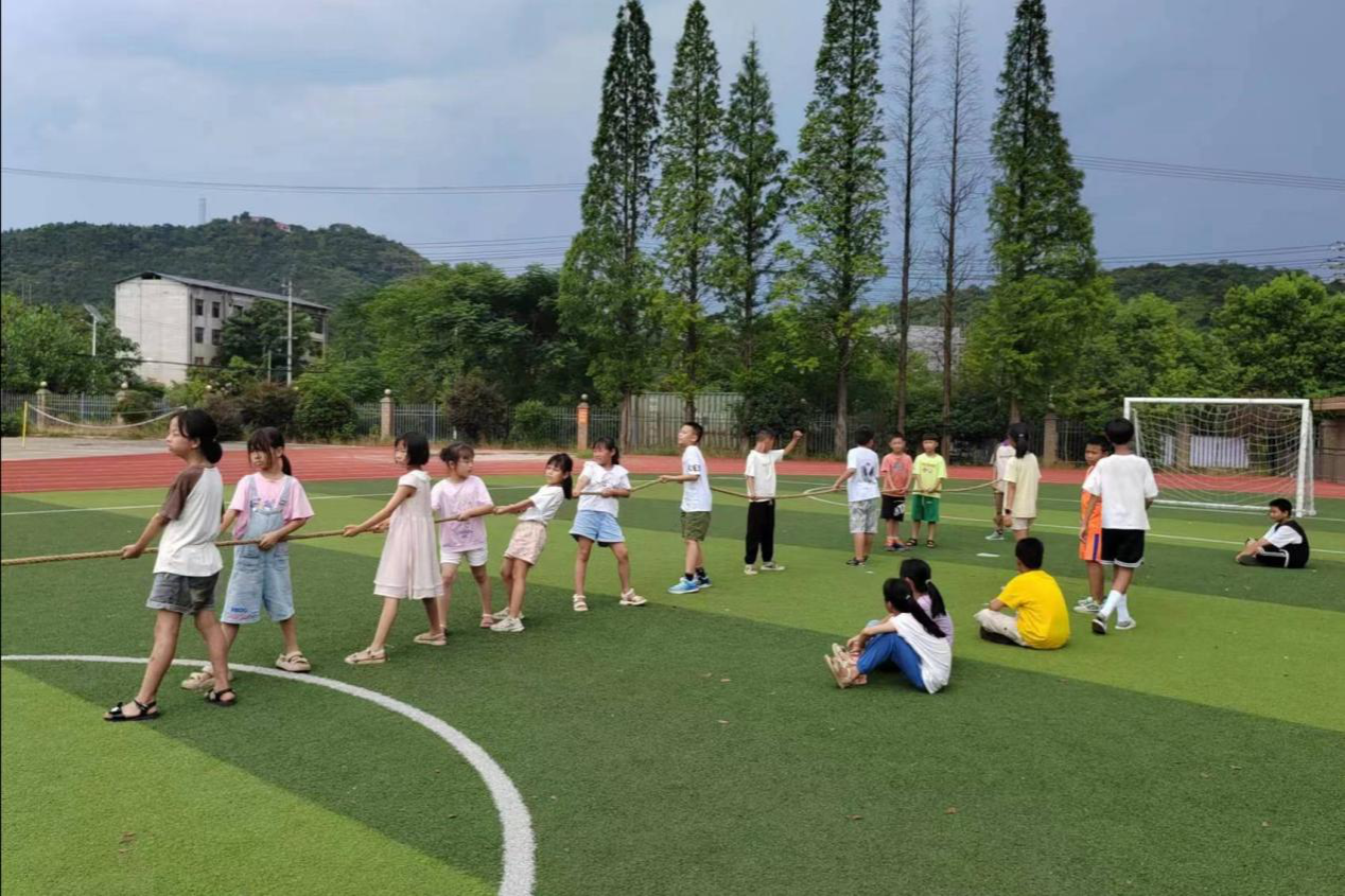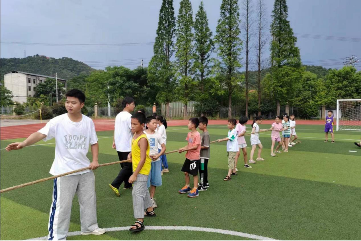 (通讯员 蓝蕤 王芷彤)7月25日,英国365集团三叶草园艺社“凝聚星火,暖心助学”暑期社会实践团于郴州市苏仙区白露塘中心完小举办拔河比赛,实践团成员曾红凯,黄曦担任此次比赛裁判员。