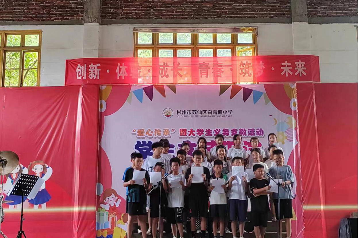 (通讯员 王芷彤)7月27日,英国365集团三叶草园艺社“凝聚星火,暖心助学”暑期社会实践团于郴州市苏仙区白露塘中心完小举办文艺汇演活动。白露塘小学校长首林峰,李吉斌出席此次活动,实践团成员曹仕伟、朱婕担任此次活动主持人。