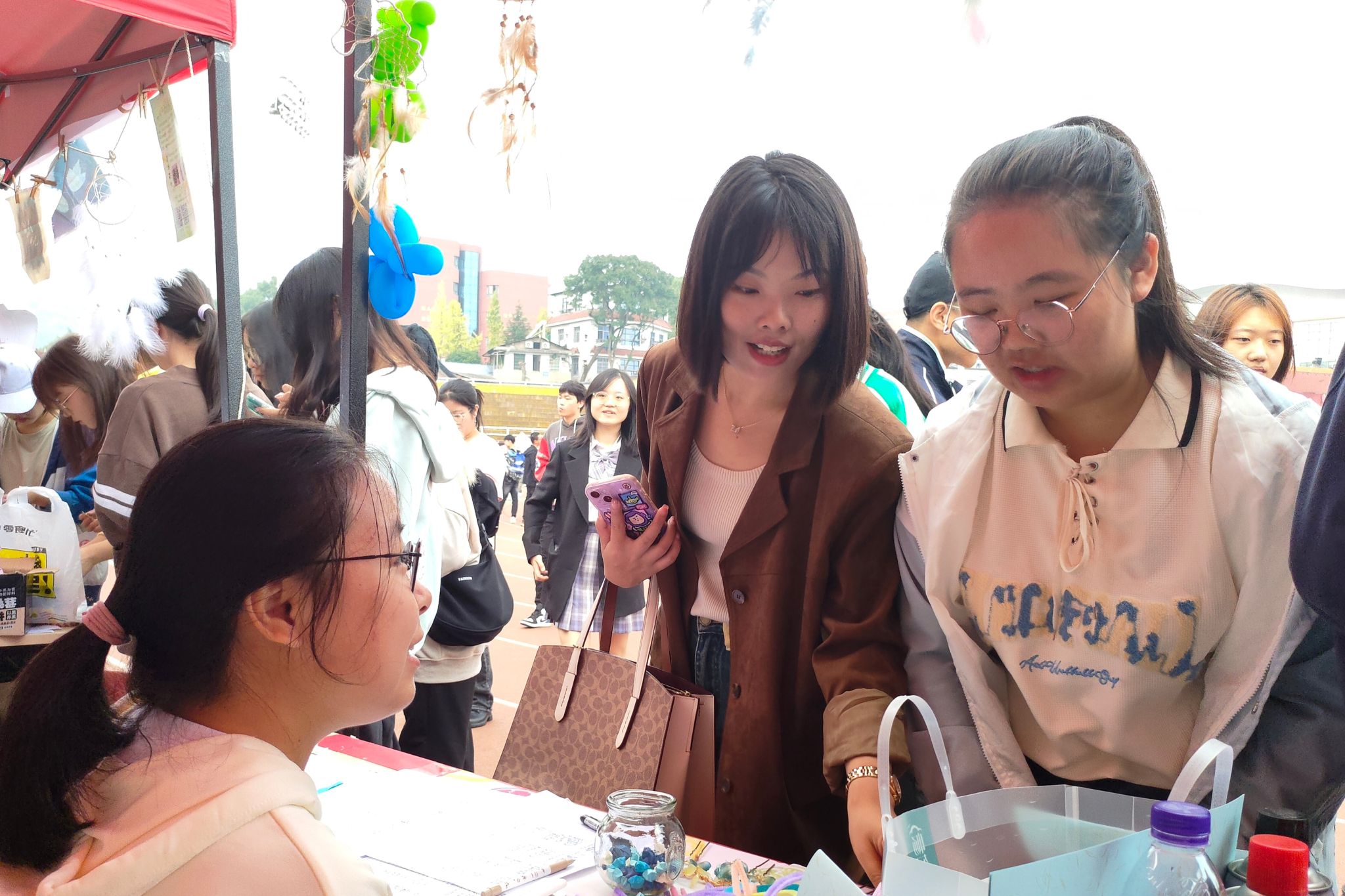 理事长孙亚茹带领理事们提前到达现场布置招新摊位,张贴横幅,设计活动,并向前来询问的学生介绍社团的基本情况,增进同学们对社团的了解。同时,理事们为同学们介绍社团特色活动制作“捕梦网”和创意扭扭棒,并以开展看图猜成语、“口是心非”等益智小游戏的形式与同学们互动。院学生社团管理服务中心指导老师吴晴带领院学社管主任王妍前来慰问创意模型社成员,并对此次社团招新活动前后期宣传提出意见。