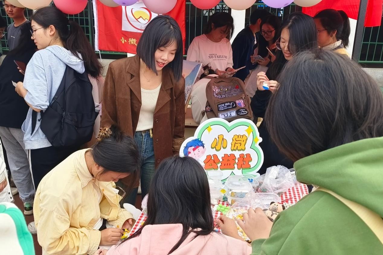 此次百团大战分为社团特色招新活动和社团特色节目展示两部分。主持人开场后,由校学生社团管理服务中心(以下简称“学社管”)主任发言,各院学社管主任合唱歌曲《青春舞台》,标志活动正式开始。生科院七大社团准备了如达人学社的套圈、染卡和塔罗牌占卜,暖阳生物学社的编制茉莉手环,创意模型社的DIY复古风花束等活动,以吸引新会员的加入。社团特色节目展示部分,生科院三叶草园艺社与数学与统计学院的绿色志愿者协会及桌游与国际象棋联合社团一同歌唱曲目《仰望星空》。吴晴前往活动现场,对生科院各社团招新工作提供建议和指导。