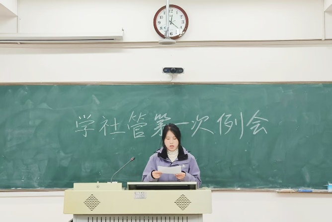 吴晴针对各个部门及社团的工作制定目标,就社团的活动举办提出指导性意见,并指出监察部负责活动统计。她讲述社团合并事宜,解释合并社团的原因和必要性,鼓励各个社团办出特色活动、展现社团风采。此外,她表示各部门及社团负责人要认真对待工作,重视学习,做到学习工作双向并进。赵琳慧则表明各部门工作任务审核的重要性,鼓励各社团以主办的形式开展活动,敦促各部门及社团负责人提前确定和培养接班人,为双代会做好准备。