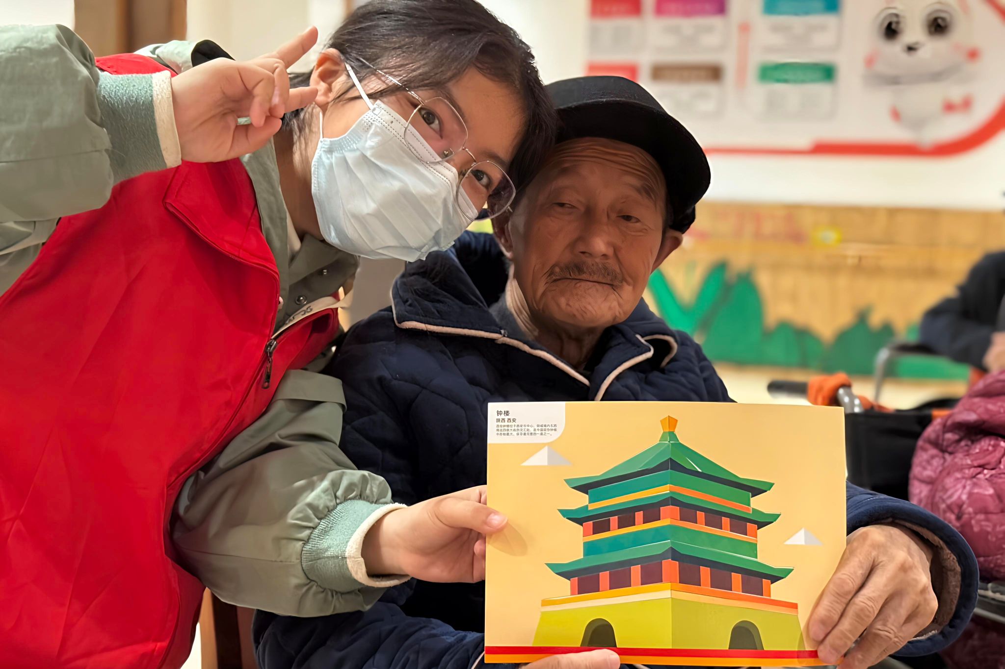 活动以岗前培训环节正式启动,专业工作人员围绕认知症老人的生理与心理特点,讲解陪伴过程中的注意事项、安全防护要点及沟通交流技巧,志愿者们认真聆听、记录要点,为后续服务开展做好准备。培训结束后,志愿者们按计划分为两组开展针对性服务:第一组志愿者与老人围坐一堂,协助整理家庭相册,共同翻阅老照片、回忆过往岁月;同时开展简易绘画互动,志愿者与老人携手勾勒线条、填充色彩,在协作创作中拉近彼此距离。第二组志愿者以多元形式开展陪伴服务,通过自我介绍与老人建立初步联系,演唱歌曲邀请老人跟唱互动;手工制作环节中,志愿者指导老人折叠纸花、粘贴装饰,在动手实践中营造轻松氛围。活动期间,一位曾参与《西游记》拍摄工作的老人,结合自身经历分享拍摄幕后故事,生动的讲述引发全场共鸣。随着服务推进,第二组志愿者根据老人兴趣与需求,进一步分为交流陪伴小组与手工协作小组,交流陪伴小组专注与老人谈心聊天、倾听过往经历,手工协作小组则继续开展精细化手工活动,以差异化服务满足不同老人的实际需求。