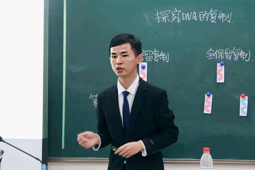 事事总是环环相扣,支教的经历带给了李绵龙实践教技的机会,随后的微格课程又让他了解并完善自己在教学技能方面的不足。在此期间,他同时准备着生科院师范技能大赛。那段时间,他积极进行备课训练,认真撰写教案,完成每周的教学课题,还会在集体内互相“磨课”,彼此提出建议,反复修正、精炼教学语言,控制好教学的时间。他心怀教育梦想,所以不曾止步。在日复一日的训练和一次复一次的修正下,李绵龙终脱颖而出,如愿以偿地进入了决赛,获得了代表院里参加校师范技能大赛的机会。备战校赛期间,在老师的指导和帮助下,李绵龙也不负众望,取得365英国上市集团第六届师范生技能大赛二等奖。