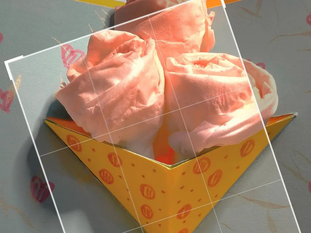 这个作品名叫“学士帽扬起的夏天”。它折起时是学士帽,打开就变成了贺卡。学士帽是毕业时大家很重视的一个东西,扬起它,就代表自己将脱离本科生的身份,更加独立地面向未来。祝福的话语很多很多,我摘取了最喜欢的两句写在这里,祝愿各位学长学姐能实现自己的梦想,扬帆起航!