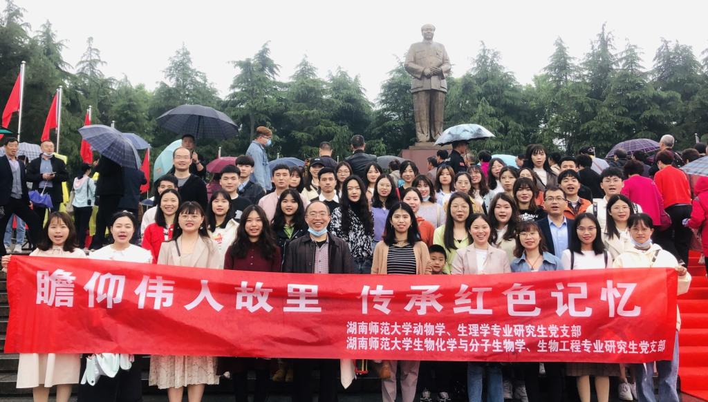 (通讯员 周雕 陈琳琳)4月24日,为庆祝中国共产党百年华诞,加强党员的党史学习教育,加强党员的交流沟通,我院动物学、生理学专业研究生党支部与生物化学与分子生物学、生物工程研究生党支部前往毛泽东故居、刘少奇故居,开展了以“瞻仰伟人故里, 传承红色记忆”为主题的党史专题学习活动。活动由两位支部书记李建中、陈敏芝老师策划组织。