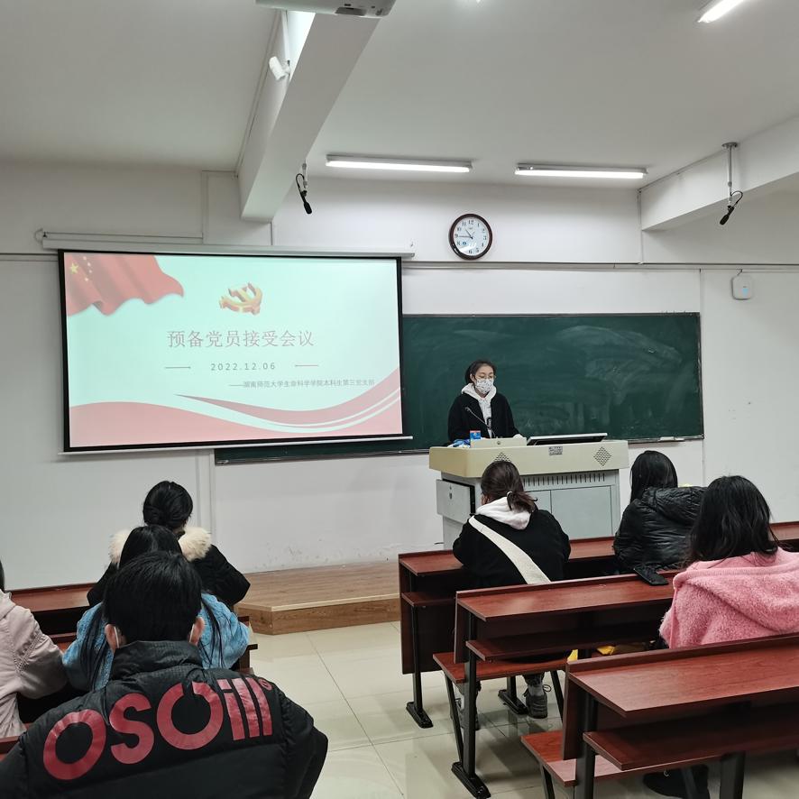 上午三个支部全体同志分别在在生科院103,B108,B107开展会议,由支部组织委员刘星雨,宣传委员周洲,组织委员刘智慧主持,会议分为四项议程:发展对象汤丽莹等18名同志汇报有关情况、支委会报告对汤丽莹等18名同志的审查情况、与会党员发表意见,对汤丽莹等18名同志能否入党进行充分讨论、无记名投票表决。