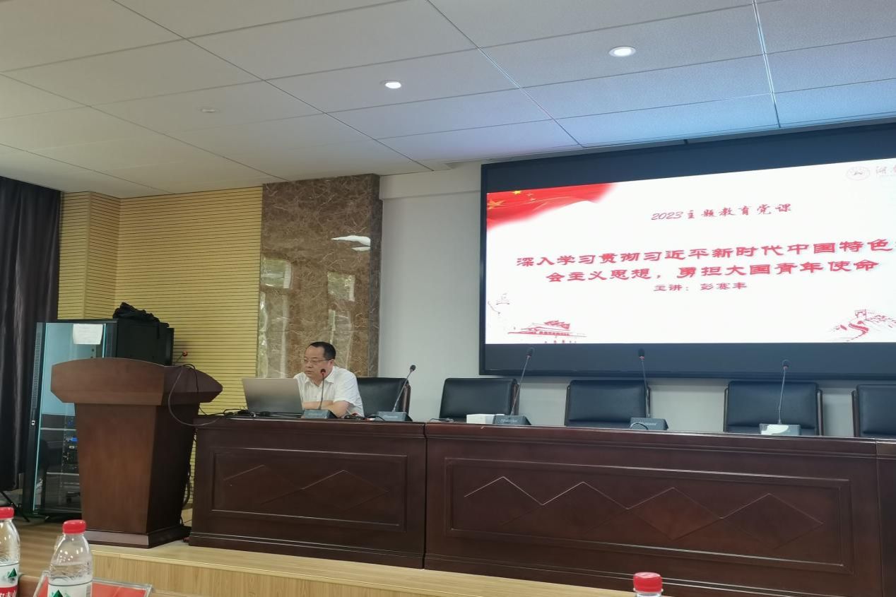 (通讯员 李芝铭 刘智慧)5月18日,院党委副书记彭赛丰为我院本科生党员讲授学习贯彻习近平新时代中国特色社会主义思想主题教育专题党课。