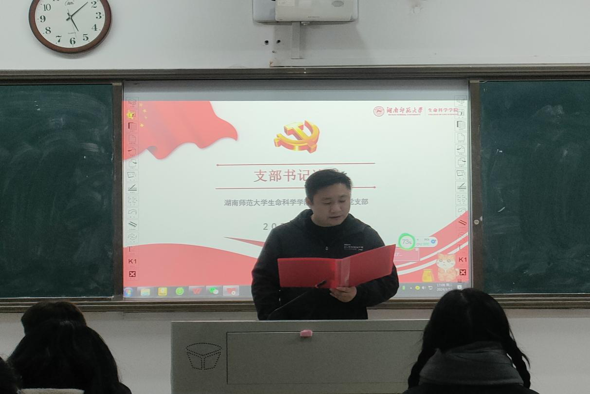 会议分为五项议程:一是第一党支部党书记吴晴、第二党支部书记周冲、第三党支部书记罗静伟老师进行述职报告;二是开展党员民主评议;三是开展组织生活会,分组开展批评与自我反思;四是党支部书记讲党课;五是全体党员观看党员教育片。