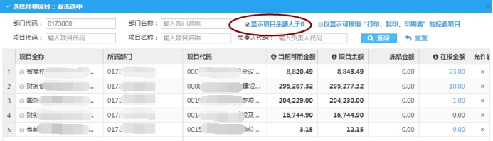 2.项目经费账号请登录财务智能管理平台查询,格式为部门+项目代码,如“531120-****”。 |
