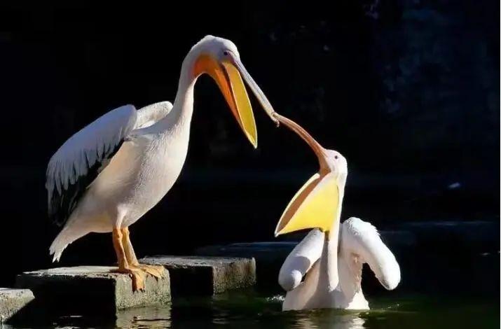 图4卷羽鹈鹕喂食