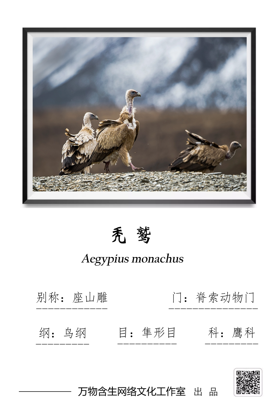 秃鹫(Aegypius monachus)是隼形目鹰科秃鹫属的大型猛禽,别名秃鹰、座山雕,是国家一级保护野生动物,IUCN标准属于近危(NT)物种。
