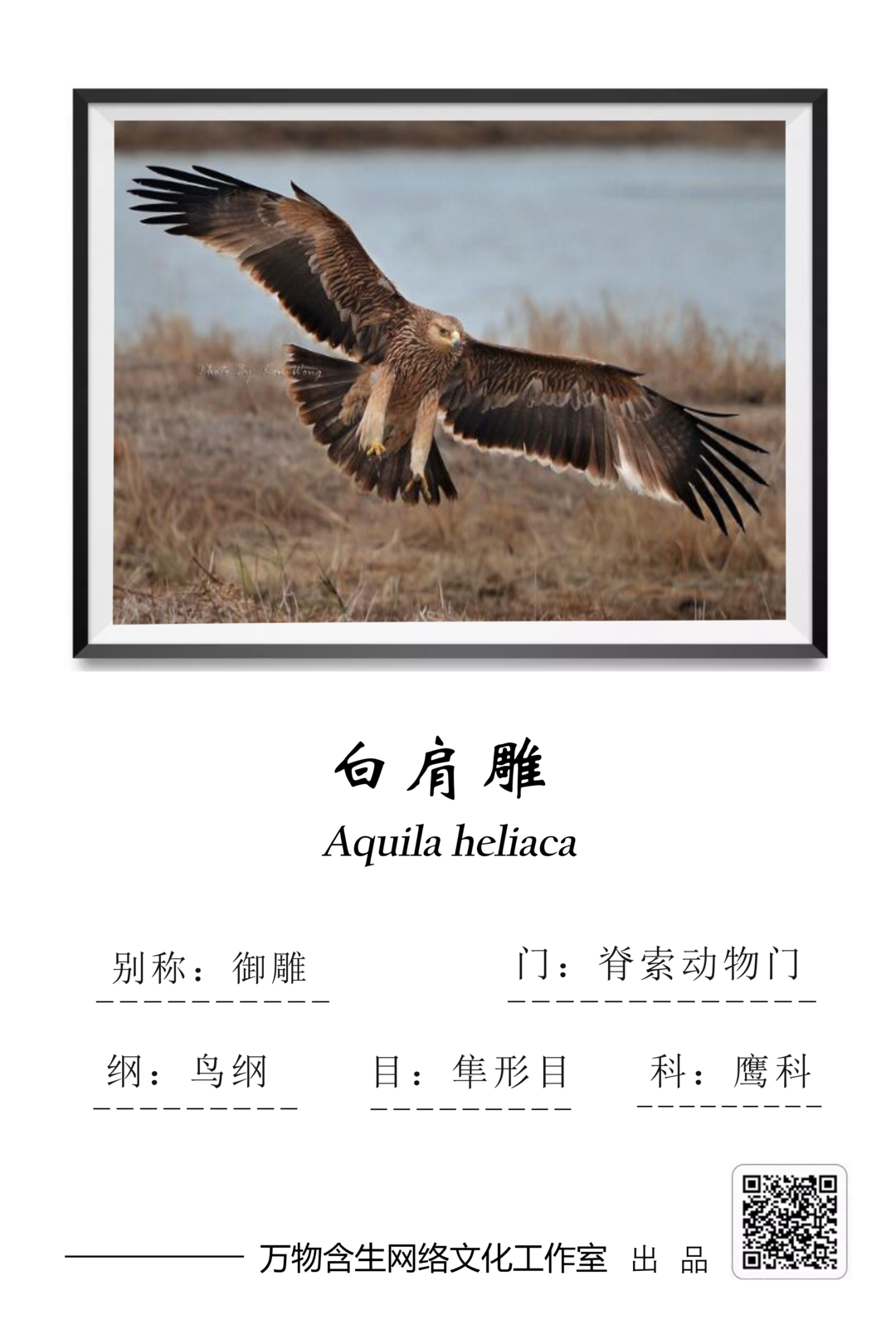 白肩雕(Aquila heliaca)是隼形目鹰科雕属的鸟类。又名御雕,是国家一级保护动物,数量稀少,IUCN标准属于易危(VU)。