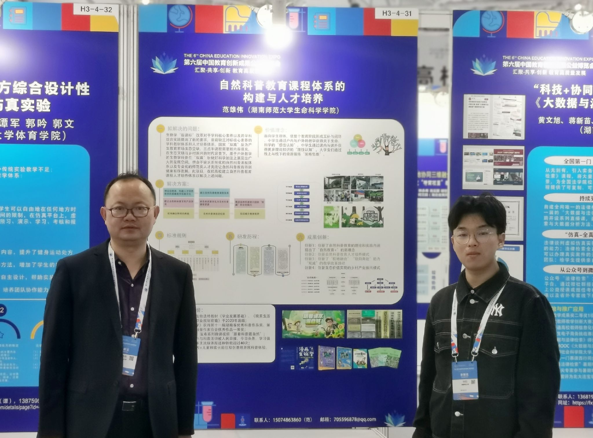 事实上,能获得专家名师一致好评的此项目并不是一蹴而就的,其背后有着常年累月的经验积累以及丰富亮眼的实践成果支撑。自项目开创以来,范博士团队参编了新课标高中选修教材三本,创作了数本市场反响极佳的科普漫画读物,与芒果TV共创了自然科普微课“跟着课本逛自然”系列节目,省内外多个媒体平台报道项目数十次,项目培养科普师范人才累计数百位……正因如此,这个由湖南教师开创的项目才能领跑在了全国前列并与其它数百个中国教育最新成果一起出现在博览会这个中国教育崇高的殿堂中。